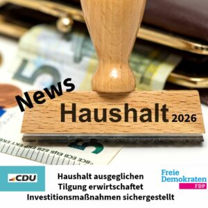 Antrag zum Haushalt 2026: CDU/FDP setzt auf Haushaltsdisziplin und klare Prioritäten